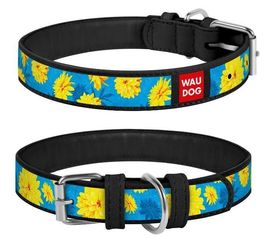 Collar Ошейник "Waudog" (Цветы), черный, 12 мм/21-29 см