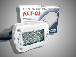 Аппарат светотерапии «АСТ-01» оказывает лечебный эффект, воздействуя на ткани и клетки организма человека световым облучением с длинами волн 470 нм (синий свет) и 625 нм (красный свет) в режиме непрерывного и в двух режимах импульсного излучения с частотами следования импульсов 10 и 600 Гц.