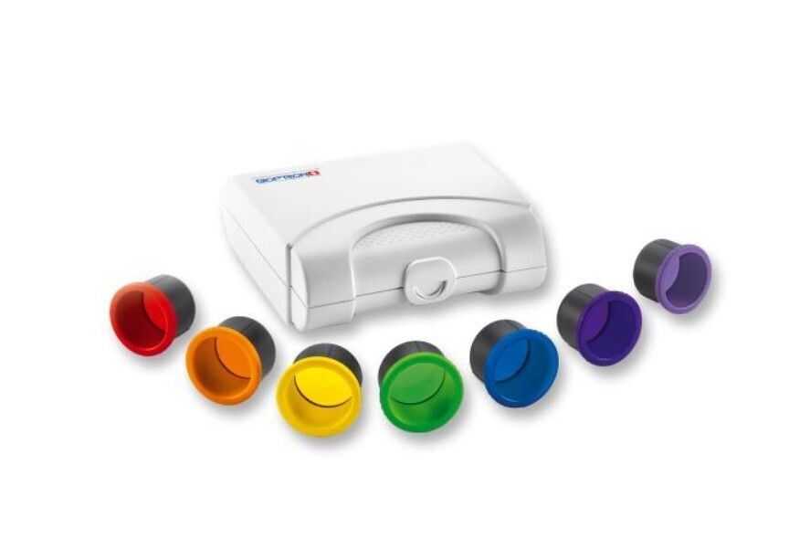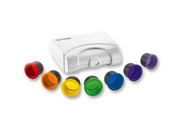Комплект из 7 обогащенных биоинформацией стеклянных цветофильтров ручной работы расширяет возможности применения светотерапии Биоптрон. Фильтры соответствуют 7 цветам спектра солнечного цвета и в то же время семи энергетическим центрам организма. Комплект включает в себя красный, оранжевый, желтый, зеленый, голубой, синий и фиолетовый фильтры и три косметических продукта, обогащенных биоинформацией. Взаимодействие света, цвета и эфирных масел из косметических продуктов во время цветотерапии с аппаратом Биоптрон Медолл помогает поддерживать хорошее самочувствие и восполнять дефицит энергии.