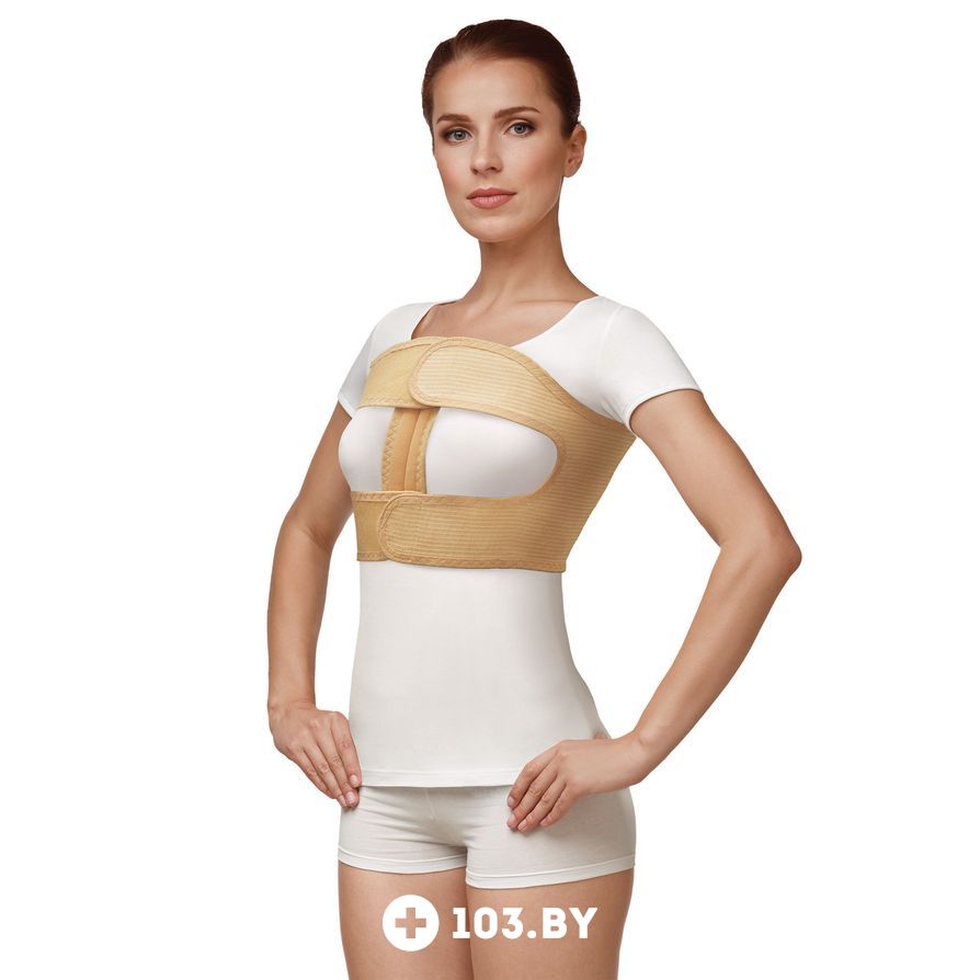 Фиксирующий бандаж по линии груди обеспечивает циркулярное равномерное сдавливание грудной клетки с лёгкой степенью фиксации рёберно-позвоночных и рёберно-грудинных сочленений.