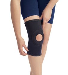 Наколенник эластичный с ограничивающим кольцом вокруг коленной чашечки обеспечивает умеренную стабилизацию и разгрузку капсулы сустава, поддерживает оптимальный темпе-ратурный баланс кожи, оказывает микромассажное и согре-вающее действие. Универсален для обеих ног.
