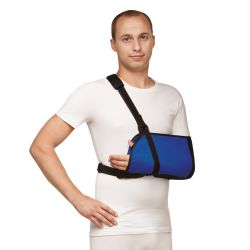 Фиксирует и поддерживает плечевой сустав и предплечье. Мягко фиксирует руку к корпусу и поддерживает предплечье в положении сгибания на 90°. Разгружает суставы верхней конечности, освобождает от напряжения плечо, предплечье и кисть. Уменьшает болевые ощущения и отечность руки.