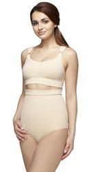 Благодаря специальному крою с корсетными косточками и высокой посадкой, и эластичным материалам, послеродовые трусы обладают высокой утягивающей способностью, поддерживают живот и бедра, создают необходимую компрессию, формируют правильные пропорции фигуры, позволяет значительно сократить восстановительный период после родов. Удобная нижняя застежка (как у боди) позволяет не снимать бандаж при необходимости.