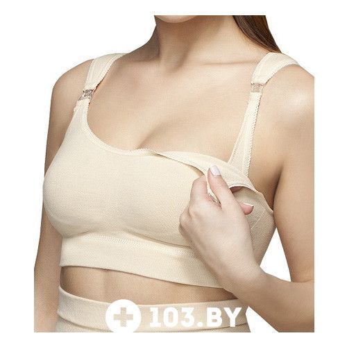 Изделие рекомендуется носить с первого дня после родов. Топ незаменим при колебаниях размера груди в период установления лактации. Широкие бретели с мягкими прокладками снимают напряжение с плеч и шеи. Модель удобно использовать для сна и ночного кормления.