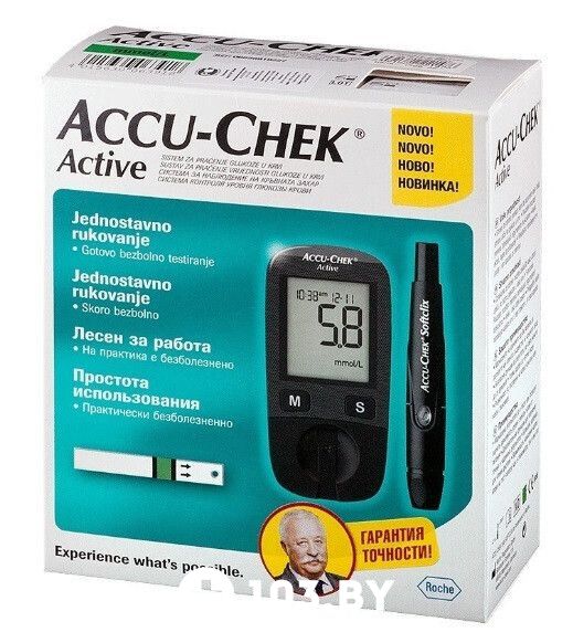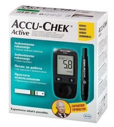 Глюкометр Accu-Chek Active NEW — это прибор для ежедневного контроля уровня глюкозы в крови, предназначенный для домашнего использования, для людей которые любят удобство, быстроту и точность измерений. Время измерения всего 5 секунд. Глюкометр очень прост в обращении, для анализа требуется очень малый объем крови (всего 1–2 микролитра). Каждая процедура измерения отображается на большом хорошо читаемом дисплее в виде графических символов и надписей. Это очень удобно даже для слабовидящих людей. Точность результатов обеспечивают специальные кодированные тест-полоски.