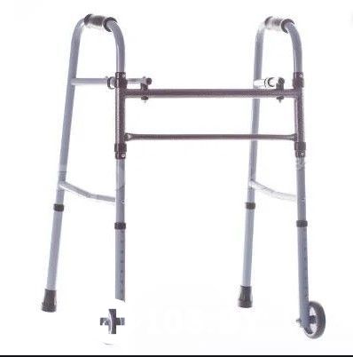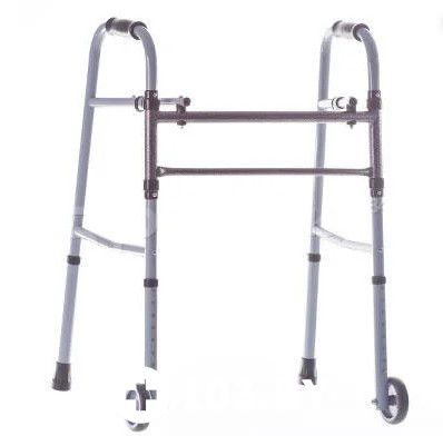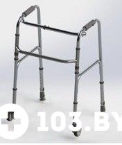 Облегченные складные ходунки с передними колесами. Регулируются по высоте. Снабжены мягкими резиновыми накладками на поручни, резиновыми наконечниками против скольжения и передними колесами из полимерного материала с резиновым ободом.