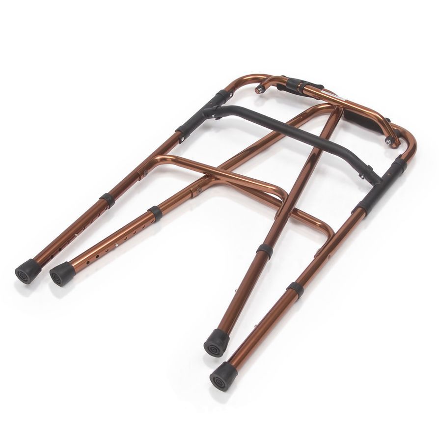 Это стандартная модель для людей, которые не хотят использовать колесики. Перемещаться можно будет чуть медленнее, зато риск, что ходунки уедут из-под ног, сведен к минимуму. Пациентам очень важно иметь опору, на которую они могут полностью положиться.