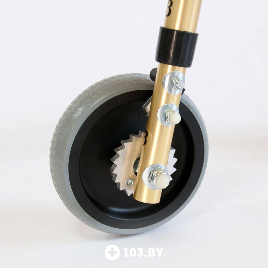 Наличие колес значительно упрощает передвижение ребенка. Они оснащены фиксаторами и храповым механизмом, предотвращающим откат ходунков назад.