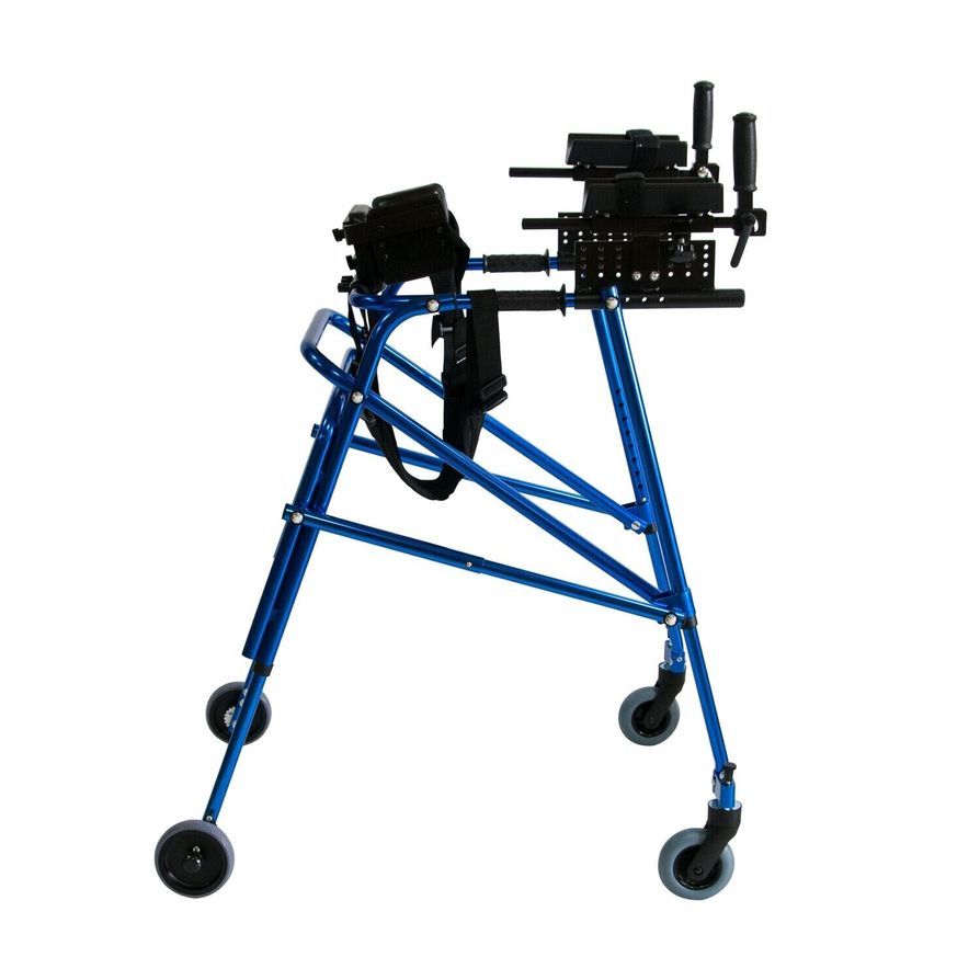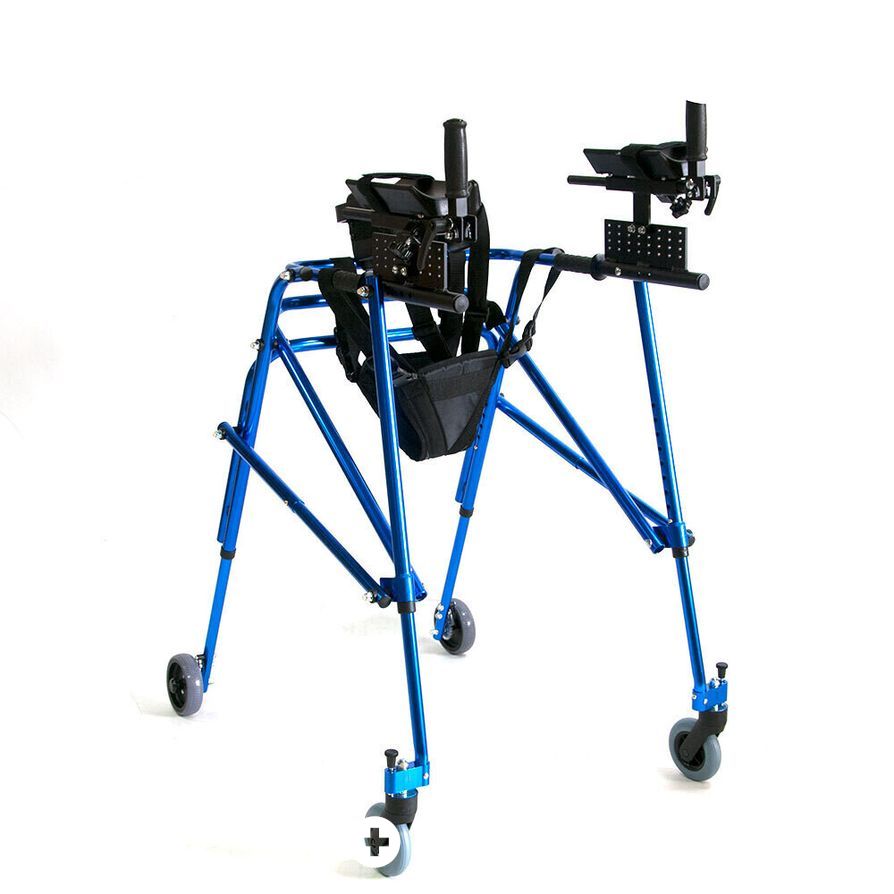 Ходунки на четырех колесах реверсивного типа предназначены для детей-инвалидов, страдающих различными формами ДЦП, способствуют устранению нарушений осанки и патологической установки стоп, помогают удерживать равновесие при ходьбе и стоянии.
