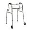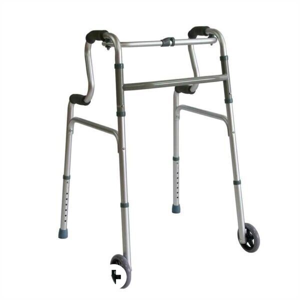 Колеса на передних ножках упрощают процесс перемещения и позволяют значительно сэкономить силы человека, использующего устройство. Сама конструкция весит немного (2,6 кг), может складываться, поэтому не займет много места при хранении. Высоту ходунков можно отрегулировать под пользователя разного роста, присутствуют 8 уровней регулировки с шагом в 2,5 см.
