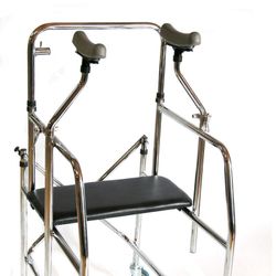 Материалом изготовления ходунков и подмышечных стоек является хромированная сталь, за счет чего достигается устойчивость изделия к воздействию коррозии. Для покрытия съемного сидения использована искусственная кожа. Передвижение с помощью ходунков осуществляется довольно легко, благодаря тому, что конструкция имеет четыре колеса. Для задних колес предусмотрены стояночные тормоза.