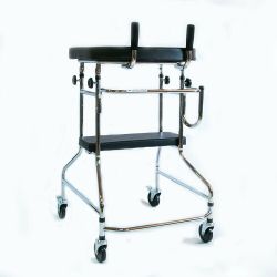 В качестве материала для изготовления ходунков использована хромированная сталь, подлокотная опора и сиденье выполнены из искусственной кожи. Благодаря четырехколесной конструкции передвигаться с помощью ходунков легко, и прилагать для этого лишних усилий не требуется. Для более надежной устойчивости конструкции на месте, на задних колесах имеются стояночные тормоза.