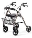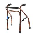 Помимо стальной конструкции с полимерным покрытием ходунки обладают повышенной грузоподъемностью. Среди оснащения стоит отметить два ручных тормоза, фиксирующих задние колеса. Ролятор легко складывается, что позволяет компактно транспортировать его или размещать дома.