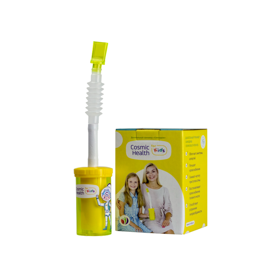 CosmicHealth for kids — дыхательный тренажер, который предназначен для улучшения кровообращения всего организма и, в первую, очередь головного мозга и сердца. Именно поэтому данный аппарат используется для помощи в профилактике разных заболеваний: артериальная гипертензия (повышенное артериальное давление), астма, бессонница, аллергия, заболевания нервной системы, частые респираторные заболевания и многие другие. В связи с улучшением поступления крови к больному органу нормализуется его работа, устраняется первопричина заболевания. При дыхании через капникатор (основную часть тренажера) происходит увеличение концентрации углекислоты в артериальной крови, благодаря чему расширяются просветы кровеносных сосудов, устраняется спазм мелких сосудов, улучшается кровоснабжение и процесс отдачи кровью кислорода во все органы и ткани. Такая методика позволяет бороться со многими заболеваниями сердечно-сосудистой системы (артериальной гипертензией, ишемической болезнью сердца и др.), дыхательных путей (бронхиальной астмой, хроническим бронхитом), бессонницей, мигренями, остеохондрозом и другими хроническими недугами.