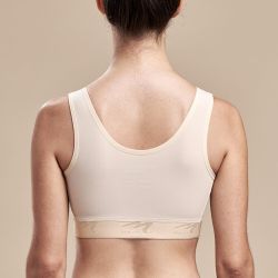 Трёхрядная застёжка на крючках позволяет регулировать объём в период восстановления.