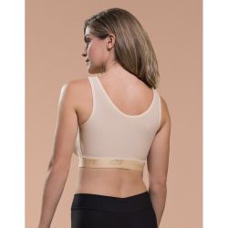 Бюстгальтер B15 с бесшовными чашками имеет вшитую эластичную ленту-стабилизатор, которая фиксирует положение имплантата и препятствует его смещению вверх. Этот бюстгальтер выполнен с использованием ткани TriFlex. Ткань TriFlex обеспечивает компрессионное сжатие с отводом влаги и охлаждающими свойствами, а так же активную антибактериальную защиту серебра.