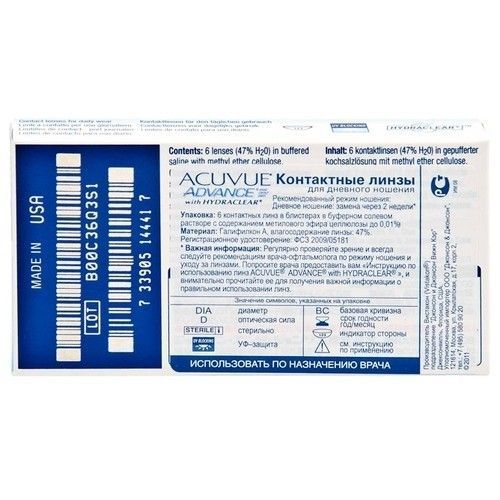 Реализация товара Контактные линзы Advance with Hydraclear (6 линз) Acuvue осуществляется только в стационарном торговом объекте по указанному адресу продавца. Информация о товарах и услугах на портале 103.by носит справочный характер и не является публичной офертой.