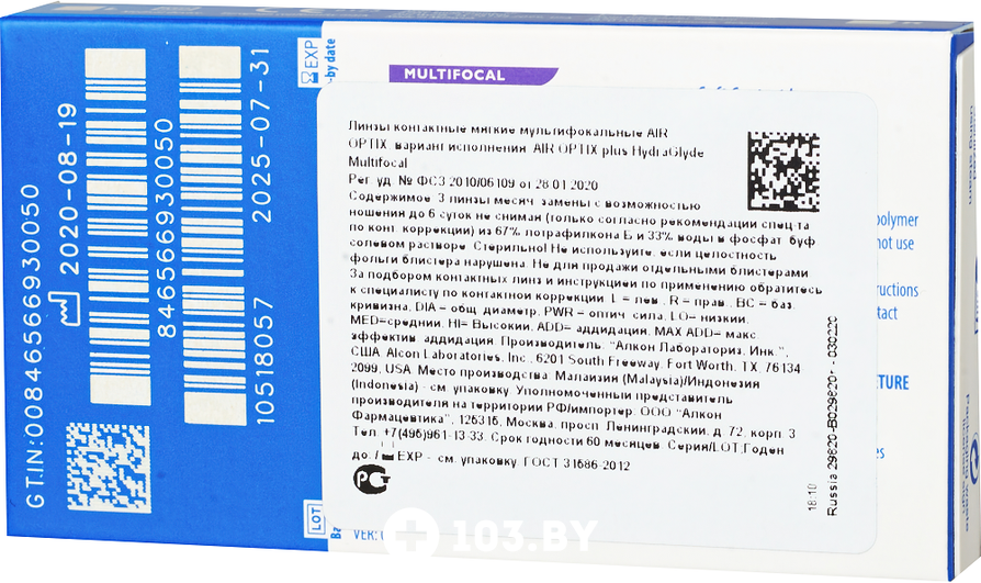 Реализация товара Контактные линзы Контактные линзы plus HydraGlyde Multifocal Air Optix (Alcon) осуществляется только в стационарном торговом объекте по указанному адресу продавца. Информация о товарах и услугах на портале 103.by носит справочный характер и не является публичной офертой.