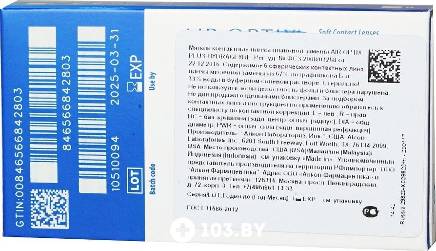 Реализация товара Контактные линзы Plus HydraGlyde (6 линз) Air Optix (Alcon) осуществляется только в стационарном торговом объекте по указанному адресу продавца. Информация о товарах и услугах на портале 103.by носит справочный характер и не является публичной офертой.