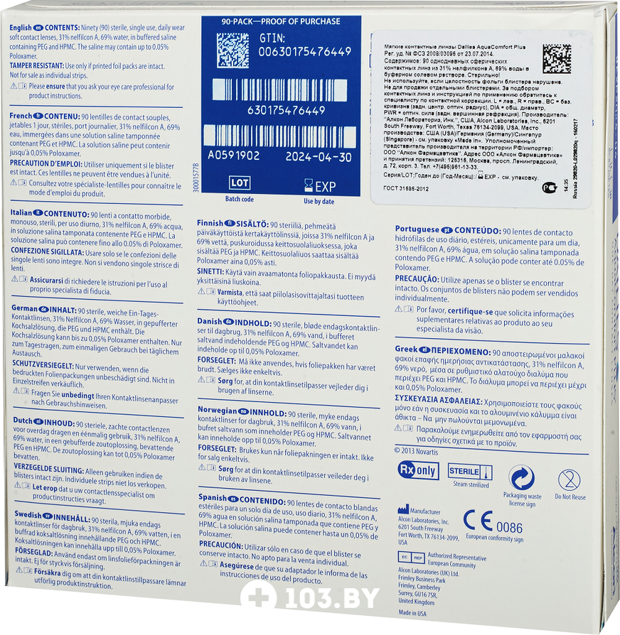 Реализация товара Контактные линзы AquaComfort PLUS (90 линз) Dailies (Alcon) осуществляется только в стационарном торговом объекте по указанному адресу продавца. Информация о товарах и услугах на портале 103.by носит справочный характер и не является публичной офертой.