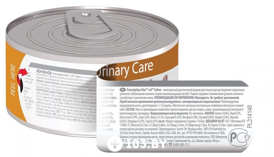 Hill's Prescription Diet Feline s/d Urinary Care - это уникальные консервы, разработанные ветеринарами. Они способствуют быстрому растворению струвитных камней у котов и кошек.