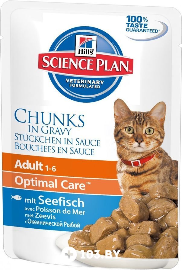 Hills Science Plan Feline Adult (Океаническая рыба) - нежные кусочки в соусе для кошек от 1 года до 6 лет.