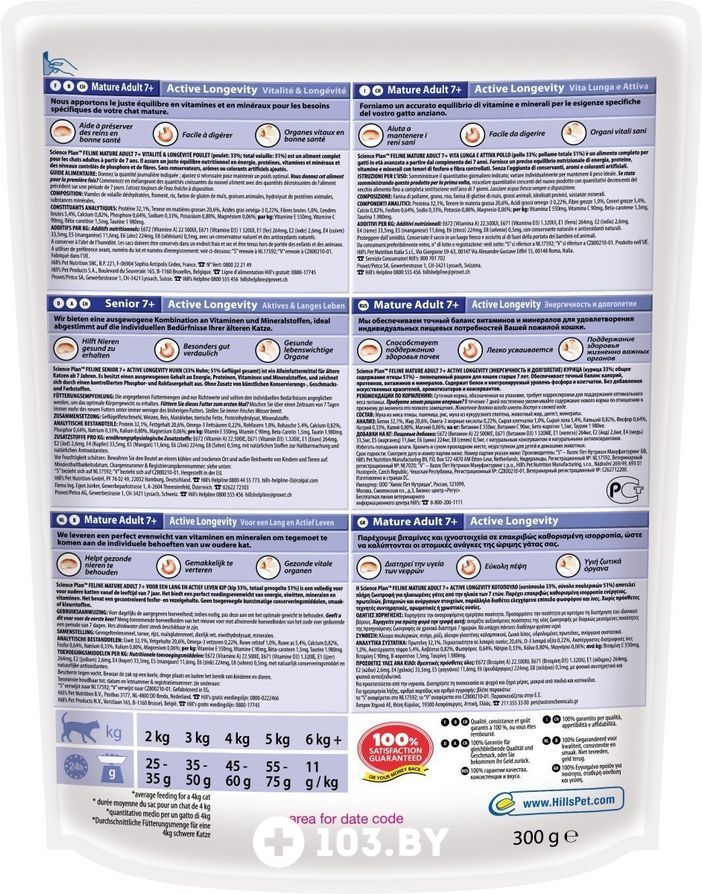 Реализация товара SP Feline Mature Adult Active Longevity Chicken Hill's осуществляется только в стационарном торговом объекте по указанному адресу продавца. Информация о товарах и услугах на портале 103.by носит справочный характер и не является публичной офертой.