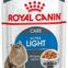 https://zoogiraffe.by/assets/images/catalog/cats/konservy/Royal-Canin/rc-inst-jelle.png ### **Royal Canin Ultra Light in jelly (в желе) - влажный корм для кошек склонных к полноте** Полнорационный влажный корм рекомендован кошкам старше 1 года. **Излишний вес может нанести вред здоровью вашей кошки!** * Излишний вес у кошек обычно бывает вызван несбалансированностью между поступлением энергии (слишком большим количеством еды или высококалорийной диетой) и расходом энергии (недостаточной подвижностью). * У взрослых кошек, особенно имеющих лишний вес, может развиться мочекаменная болезнь, возникающая из-за недостаточного потребления воды и редкого мочеиспускания * Если при похудении используется питание с недостаточным содержанием белка, возможны потери не только жировой, но и мышечной массы кошки. -19% КАЛОРИЙ Влажный корм Ultra Light 10 помогает сократить количество спонтанно потребляемых кошкой калорий. L-карнитин стимулирует расщепление жиров. * **Поддержание мышечной массы ** Способствует поддержанию мышечной массы кошки благодаря высокому содержанию биологически ценного протеина и потере жировой массы при похудении. * **Здоровье мочевыделительной системы ** Помогает поддержать здоровье мочевыделительной системы кошки, сокращая концентрацию минеральных веществ, способствующих образованию мочевых камней. **Ингредиенты** Мясо и мясные субпродукты, злаки, яйца и яйцепродукты, субпродукты растительного происхождения, минеральные вещества, углеводы. Добавки (в 1 кг)*: Витамин D3: 145 ME, Железо: 7 мг, Йод: 0,07 мг, Марганец: 2 мг, Цинк: 22 мг, L-карнитин: 40 мг. **Рекомендуемая суточная норма кормления** В зависимости от веса кошки, возможны 2 варианты кормления: * 100% влажного продукта * смешанное кормление: 1 или 2 пауча Ultra Light + сухой корм (г) Рекомендуемая комбинация с сухими продуктами Royal Canin: * Indoor 27 * Indoor Long Hair 35 * Fit 32 * Exigent Aromatic Attraction 32 * Exigent Savoir Sensation 35/30 * Exigent Protein Preference 42 * Sterilised 37 * Light 40 * Oral Sensitive 30 * Intense Hairball 34 Вес кошки | Нормальный | Избыточный | Нормальный | Нормальный | Избыточный ---|---|---|---|---|--- | паучей | паучей | 1 пауч + грамм | 2 пауча + грамм | 2 пауча + грамм 3 кг | 3 | \- | 25-30 | 10-15 | \- 4 кг | 4 | 3 | 40-45 | 25-30 | 15-30 5 кг | 5 | 4 | 50-60 | 35-45 | 25-45 6 кг | 6 | 4 1/2 | 65-75 | 50-55 | 35-55 7 кг | 6 1/2 | 5 1/2 | 75-85 | 65-70 | 45-70