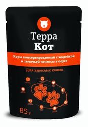 Терра Кот для взрослых кошек с индейкой и телячьей печенью - влажный корм для кошек (в соусе)