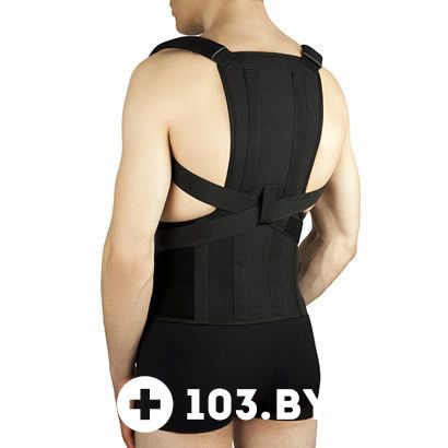 Корсет с моделируемыми металлическими ребрами жесткости предназначен для сильной фиксации грудного отдела позвоночника. Производит разведение плечевого пояса, реклинацию и разгрузку тел средне- и нижнегрудного отделов позвоночника. Обладает легким массирующим действием.