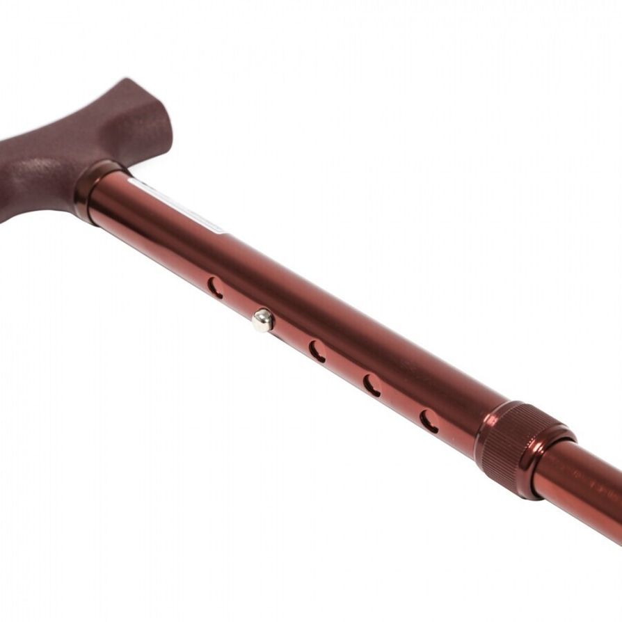Трость выполнена из прочного и легкого алюминиевого сплава. Регулируется по высоте с помощью кнопочной фиксации.