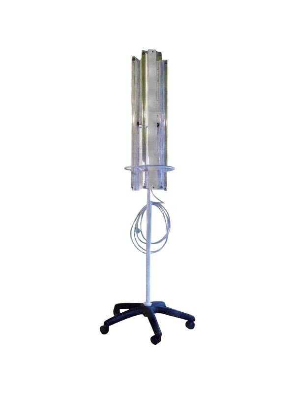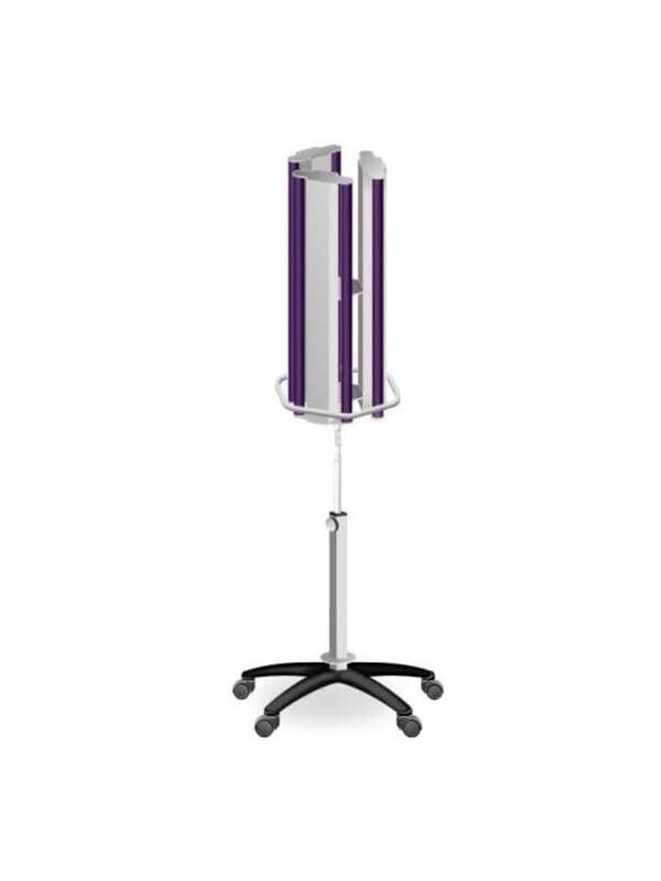 Облучатель передвижной имеет открытые лампы и может использоваться в свободных от людей помещениях для быстрой дезинфекции воздуха.