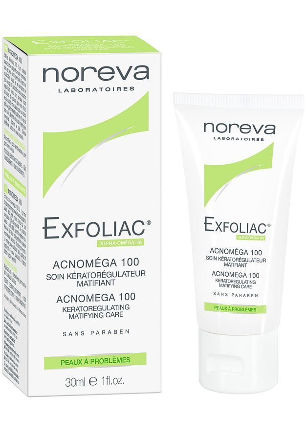 Средство с длительным матирующим эффектом Noreva Exfoliac Acnomega 100 matifying care создано специально для ухода за жирной и проблемной кожей лица. Благодаря действию кераторегулирующих и кератолитических ингредиентов, с каждым днем применения этого крема нормализуется активность сальных желез, сглаживаются неровности микрорельефа, светлеют пигментные пятна. Антисептики и бактериостатики борются с прыщами.