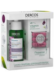 В состав набора входят: Шампунь для блеска волос Dercos Nutrients Vitamin, 100 мл + Резинка-браслет для волос Invisibobble 3 шт В ПОДАРОК!