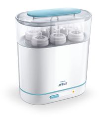 Размер электрического парового стерилизатора Philips Avent «3 в 1» можно регулировать в зависимости от загрузки, поэтому он не займет много места на кухне.