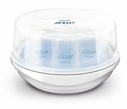 Стерилизатор для СВЧ стерилизует детские бутылочки и другие изделия приблизительно за 2 минуты и уничтожает до 99 % микробов и бактерий. Точное время цикла стерилизации зависит от мощности СВЧ-печи: приблизительно 2 минуты при мощности 1200–1850 Вт, приблизительно 4 минуты при мощности 850–1100 Вт, приблизительно 6 минут при мощности 500–800 Вт.