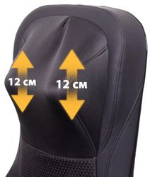 Массаж в области воротниковой зоны выполняется четырьмя отдельными встроенными в массажную накидку массажными роликами, которые выполняют растирающий массаж по и против часовой стрелки. Высоту роликов можно отрегулировать на 12 см вверх и вниз, тем самым подстроив под рост пользователя.