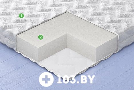 2 - Пенополиуретановый блок 10 см. Синтетический пенополиуретан обладает хорошей воздухопроницаемостью, гипоаллергенный. Придает матрасу упругость и комфорт.