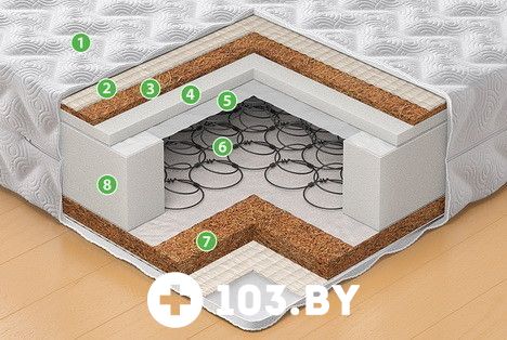 8 - Еврокаркас из пенополиуретана. Удерживает пружинный блок и придает четкую форму матрасу.