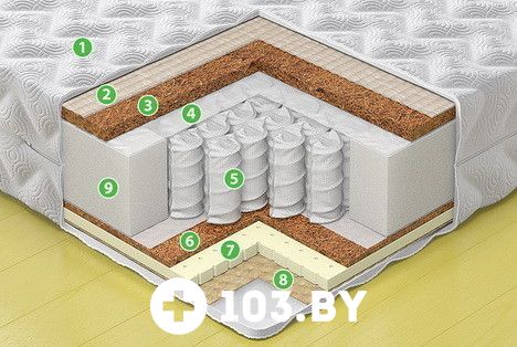 9 - Еврокаркас из пенополиуретана. Удерживает пружинный блок и придает четкую форму матрасу.