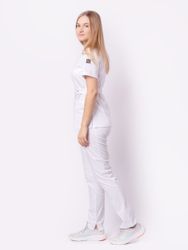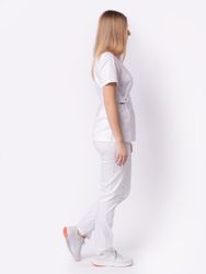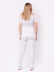 Медицинская рубашка полуприлегающего силуэта «Бета TREND» — сшита из смесовой ткани, которая принесет комфорт в течение рабочего дня. Вискоза позволяет коже дышать, полиэфир придает материалу износостойкость и меньше мнется, делая уход за вещью проще, спандекс благодаря эластичным стрейч свойствам позволяет блузе тянуться и при этом сохранять форму. Малообъемная модель без застежек удобно надевается через горло. Короткие свободные рукава не сковывают движения при носке. Накладные боковые глубокие карманы вместят необходимые инструменты и личные вещи. V-образный вырез выделяет шею. Боковые хлястики с застежками на кнопке дают возможность регулировать униформу по объему талии. Под одним из хлястиков имеется петля для крепления бейджа.