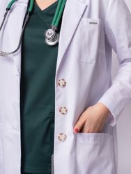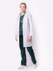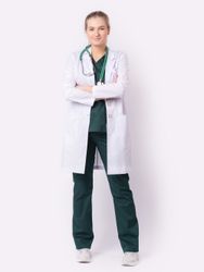 Халат медицинский женский стильный белый с длинным рукавом «Фьючи» — удобная спецодежда для медицинских сотрудников. Халат имеет длинные регулируемые рукава, глубокие накладные карманы по бокам и вместительный нагрудный, классический английский отложной воротник, полуприлегающий силуэт. Центральная застежка на пуговицах. Данная модель сшита из легкой немнущейся ткани. Состав : 35% хлопка и 65% полиэфира, что позволяет ткани не растягиваться и сохранять форму. Материал легок в уходе и прослужит долго при правильных стирках.