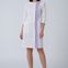 Халат выполнен из комбинации двух тканей контрастного цвета.