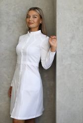 Халат женский, полуприлегающего силуэта, с застежкой на металлические кнопки по планке борта.