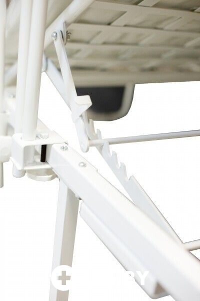 Кровать легко очищается, устойчива к дезинфицирующим средствам и рассчитана на длительную эксплуатацию в медицинских учреждениях.