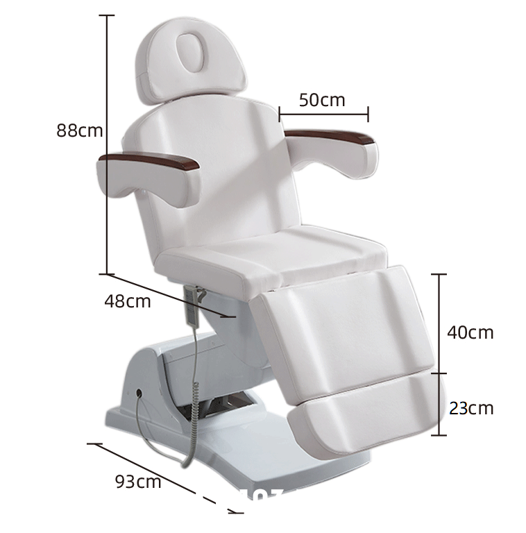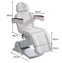 Профессиональная массажная кушетка (кресло косметологическое) с электроприводом В-871 разработана с применением современных технологий и качественного материала представляет собой семисекционное оборудование с тремя электроприводами (моторами) для регулировки высоты массажной кушетки, регулировки угла спинки и регулировки угла секции для ног. Кушетка полностью раскладывается в горизонтальное положение, имеется подголовник с отверстием для лица и съемные подлокотники со стильными деревянными вставками.