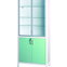 Верхняя секция с дверцами из стекла в рамке из анодированного алюминиевого сплава и тремя регулируемыми стеклянными полками.