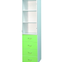 Данная модель изготовлена из ламинированной ДСП. Корпус белого цвета, ящики окрашены зеленым. Высота составляет 1,87 м, ширина 0,45 м, глубина 0,43 м, весит 46 кг. Устанавливается на пластмассовые ножки, которые регулируются по желанию. Состоит из двух секций разного предназначения. Верхняя часть представлена двумя полками из ДСП, закрывается на стеклянную дверцу. Стекло находится в раме из алюминиевого сплава. В нижней части расположены 4 выдвижных ящика, каждый из которых имеет тонкую ручку из металла.