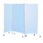 Ширма помещается на прочные сдвоенные поворотные колеса Ø40 мм с резиновой окантовкой, отвечающие за маневренность и мобильность. За счет наличия уникальных креплений возможно любое количество секций.