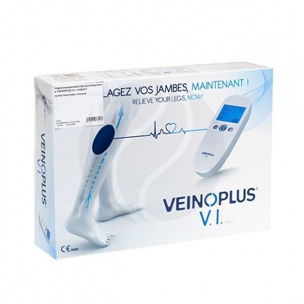 Veinoplus V.I. — аппарат для миостимуляции, воздействует на сосуды нижних конечностей и в области других мышц и сосудов. Благодаря стимуляции и сокращению мышц происходит тренировка не только кровеносных, но и лимфатических вен и сосудов, соответственно, улучшается венозный кровоток и лимфообращение.